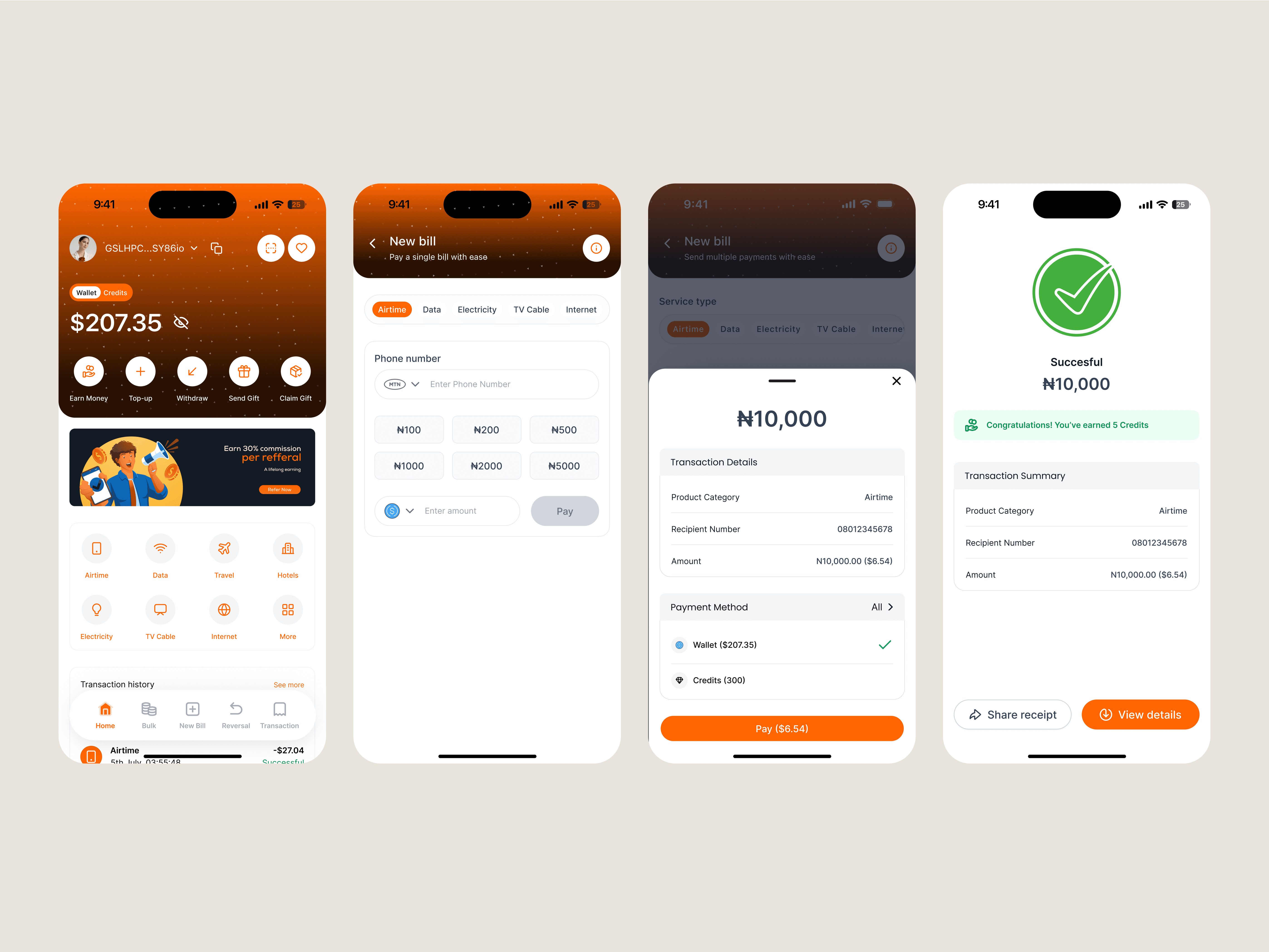 Airbills Pay is a Web3-based payment application that simplifies how users manage bills and utilities such as airtime, data, electricity, and cable subscriptions, while also integrating flight and hotel bookings which is an uncommon feature for mobile platforms in this category. The goal of the redesign was to elevate usability, visual harmony, and trust for both Web3-native users and traditional Nigerians exploring decentralized payment tools.